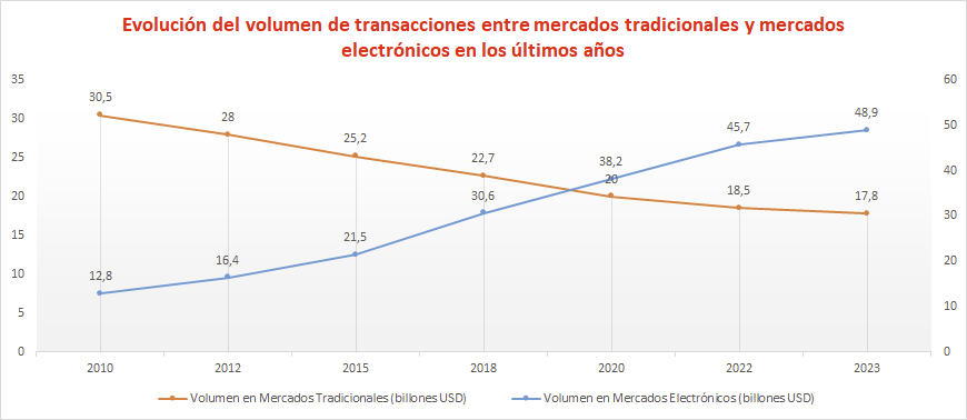 | Trading electrónico (1980s) | Introducción de las primeras plataformas electrónicas, eliminando la necesidad de estar físicamente en el mercado. | Aceleración de la operativa y accesibilidad a nivel global. |
