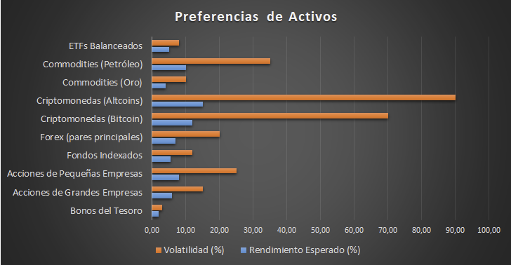 Las preferencias por diferentes tipos de activos son fundamentales para el perfil de un trader. Estas preferencias deben alinearse con tu tolerancia al riesgo y objetivos de inversión.