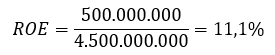 Si una empresa tiene un beneficio neto de 500 millones de euros y un patrimonio neto de 5.000 millones de euros, el ROE será: